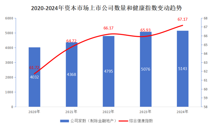 《陈述》表示,在2024年,剔除银行、非银金融和房地产行业的上市公司后,全市集5143家上市公司的轮廓健康指数平均水平为67.17,相较2023年的65.93有所飞腾,且自2020年以来,“十四五”时辰总体呈现飞腾态势。