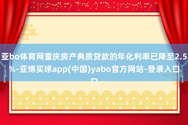 亚bo体育网重庆房产典质贷款的年化利率已降至2.5%-亚博买球app(中国)yabo官方网站-登录入口